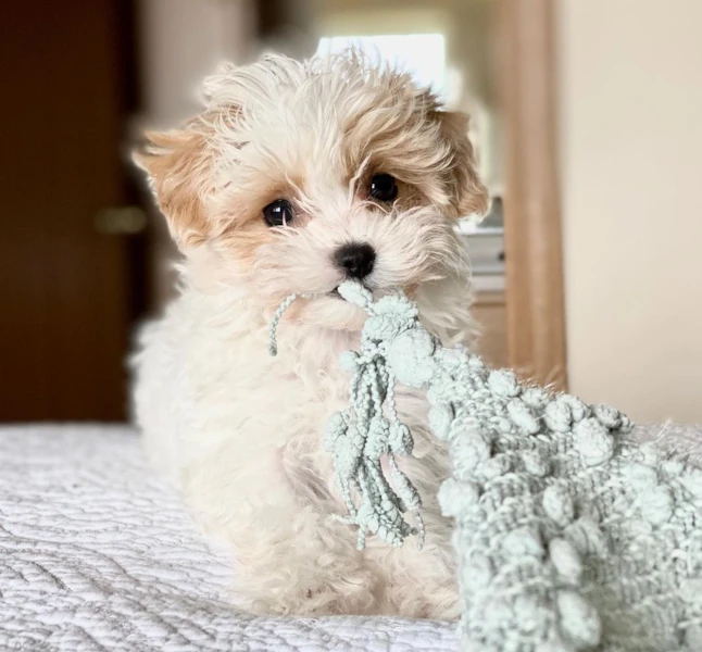 These sweet, fluffy bundles of joy are a perfect mix of Maltese gentleness and Poodle intelligence. With their soft wavy coats, playful personalities, and loving hearts, they’re ready to fill your home with endless cuddles and happiness.